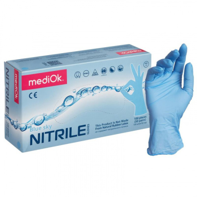 Перчатки нитриловые MediОk нестерильные голубые, 50 пар/уп
